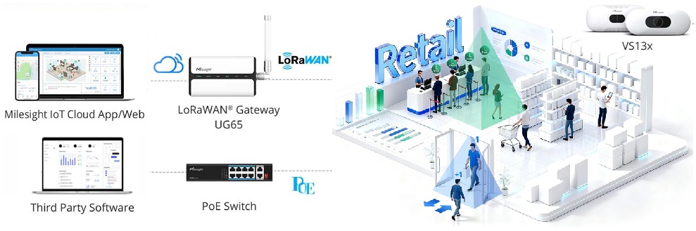 Milesight 産業用IoTシステム製品 VS135 産業用LoRaWAN / PoE AI ToF人数カウントセンサー UG65 産業用LoRaWANゲートウェイ |